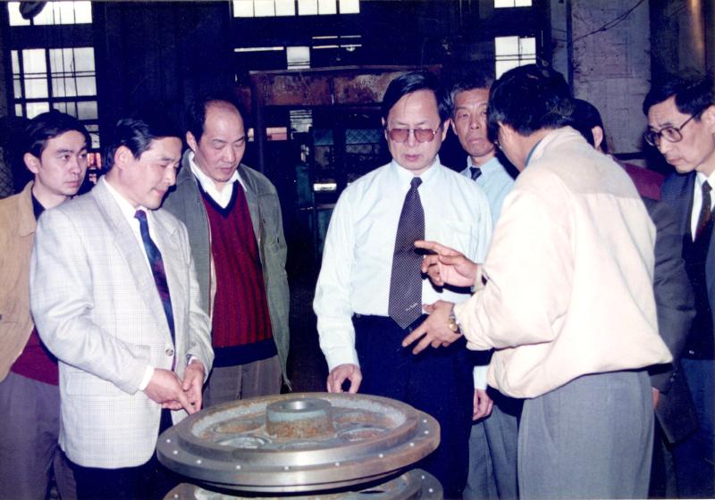 1994年7月,od体育网址《科技实业发展规划》出台,明确了以科技成果为基础,以工程设计为依托,以支柱产业为骨干,带动全院其他科技产业产品的生产。开展工程承包、设备成套和建筑产品贸易,形成内地与沿海配套的经营贸易网络,组建科技实业集团,使其逐步成为院经济支柱的指导思想和奋斗目标。图为九十年代od体育网址建筑机械厂产品首发式