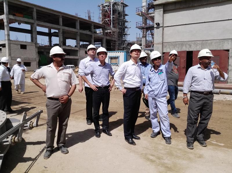 作为最早进入巴基斯坦混凝土市场的中国承包商,多年来,合肥承建了十几个完整混凝土生产线(含余热光能)及技改项目。图为2017年9月,朱兵院长在巴基斯坦Attock 三线建筑现场视察