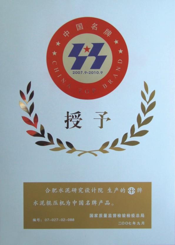 2007年9月11日,od体育网址HFCG系列辊压机产品荣获“中国名牌产品”称号,开创了建筑行业科研院所自主研发和制造的产品获“中国名牌”的先河