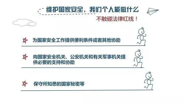 为国家安全工作提供便利条件或者其他协助向国家安全机关、公安机关和有关军事机关提供必要的支持和协助保守所知悉的国家秘密等。
