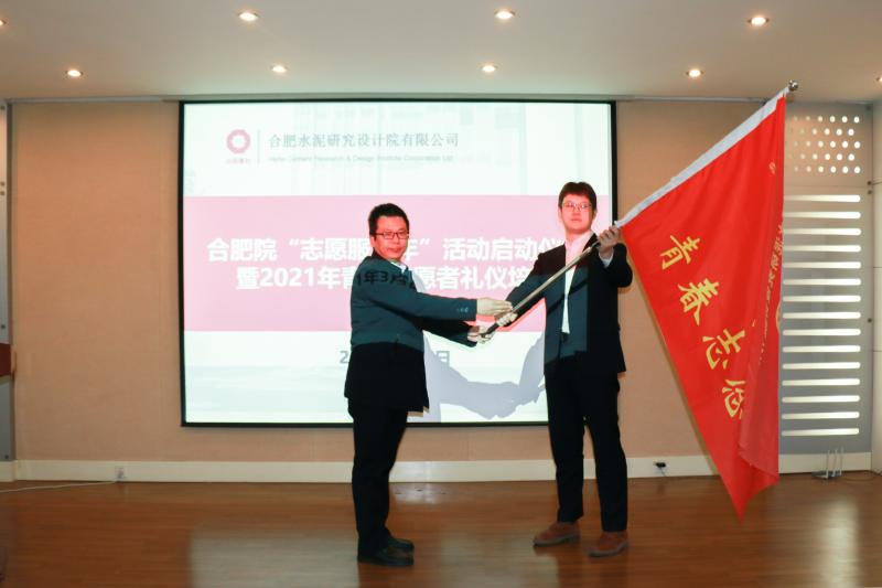 会上,殷召飞为青年志愿者团队授予了团队旗帜。