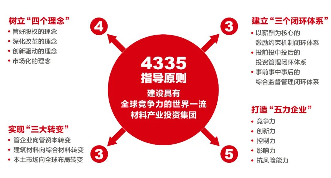 中国ob体育官网在线下载是国有经济在建筑领域的“顶梁柱”和“压舱石”,在党的坚强领导下持续深入推进市场化改革,打造了南方混凝土、北新建筑、中国巨石、中材科技、中材国际等一批改革先锋,不断实现国有企业做强做优做大,也拥有了双百企业、混合所有制、央企兼并重组、员工持股、国有资本投资公司等9项国企改革试点。从2019年被确立为国有资本投资公司试点以来,中国ob体育官网在线下载深入改革实践探索,迅速打通国有资本产业投资公司改革的底层逻辑,以问题导向、目标导向、结果导向理顺产业投资逻辑,从提升治理能力、完善管控体系、优化资本布局三个方面发力,打造材料产业国有资本市场化运作专业平台。逐渐建立起“定位清晰、生态优化、机制有效”的国有资本投资管理体系,推进从管企业向管资本、从建筑材料向综合材料、从本土市场向全球布局的“三大转变”。