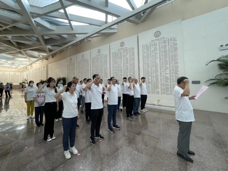 通过讲解员对各个展厅的介绍,大家了解了渡江前的国内外形势、战役的决策部署和准备,突破千里防线,抢滩登陆的场景。馆内一张张发黄的照片、一件件陈旧的文物、无不在诉说着一个个感人的英雄事迹。水底厅,渡江战役烈士名录见证了百万雄师过大江的壮阔场面。在此处,面对先烈们,全体党员重温入党誓词,体会到我们来之不易的美好生活都是先辈们用鲜血换来的。我们要牢记历史、砥砺前行。